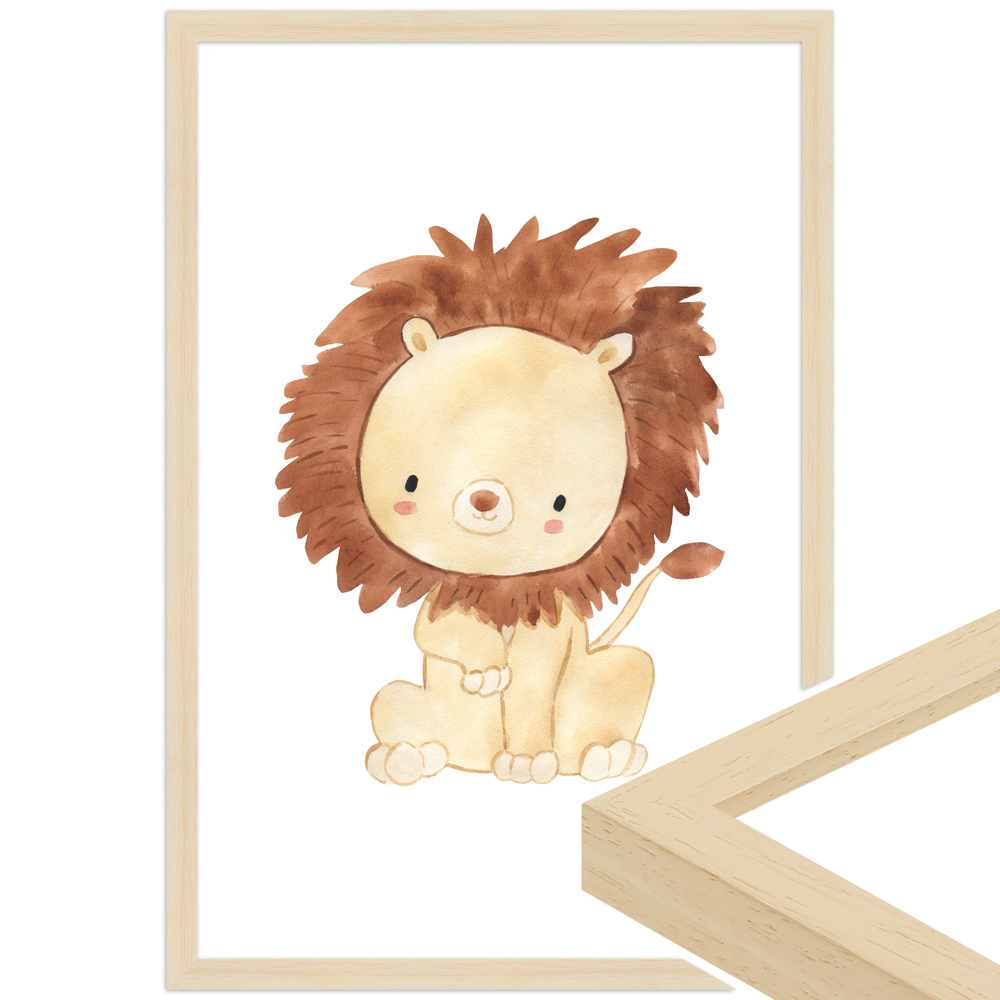 Stark wie ein Tiger, schnell wie ein Adler, groß wie ein Elefant oder loyal wie ein Hund. Die Welt der Tiere ist gigantisch, vielfältig und fasziniert uns Menschen täglich. Mit unserem Aquarell-Tier-Poster kannst du die Kraft und Liebenswürdigkeit von Löwen auch in deinen eigenen vier Wänden zelebrieren. Das Aquarellmotiv punktet mit kräftigen Farben und einer hohen Druckqualität. Dazu überzeugt unser H950 Holzrahmen in einem schönen Naturton. Unser dekoratives Aquarellbild kannst du bedenkenlos im Wohnzimmer oder Kinderzimmer aufhängen, da der Rahmen eine hochwertige und bruchsichere Kunstglasscheibe enthält, musst du dir um Glasscherben keine Sorgen machen.